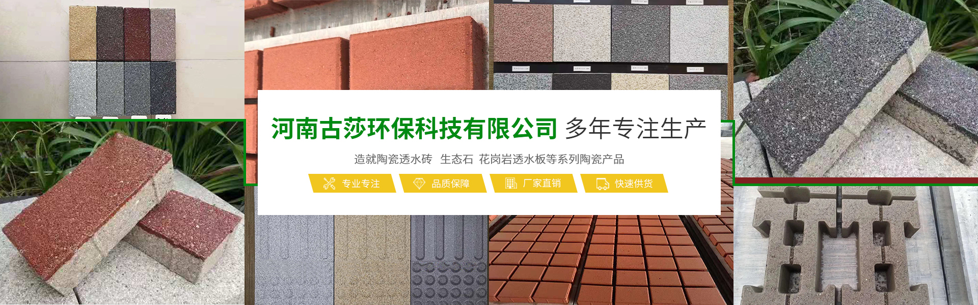 河南古莎環保科技有限公司總坐落于交通樞紐城市鄭州,是一家具備研發、生產、銷售能力為一體的綜合性現代化陶瓷企業。本公司專業生產經營生態陶瓷透水磚、生態鋪石、PC仿石材透水磚、PC仿石材景墻磚、普通透水磚、燒結磚等系列產品,完善的研發團隊,完善的生產流水線設備,打造完善的陶瓷企業。古莎環??萍棘F代化陶瓷企業是美化城市,改善生活環境質量的生態環保產品,可廣泛應用于公共建筑廣場、城市道路、公園、藝術景觀、廊道、房地產、別墅住宅小區、地鐵口、車站、高速公路服務區等。古莎環??萍荚谠刑沾善髽I基礎上,另拓展園林綠化、市政施工、瀝青包工包料施工、公路維修等業務板塊,專業培訓了一些園林綠化、市政施工技術人員,并有多年的施工養護經驗以及建筑工程經驗。保證市政工程施工質量以及園林綠化后期養護規范化、專業化。古莎環??萍妓裱钠髽I與品牌發展思路,是奠定在品質與產品應用之上。環保理念由我們共同倡導,理性思考,以推進步,感性溝通,以共建優越。古莎環??萍寂c大家真誠合作,攜手共進,為助力海綿城市建設,建筑高品質的綠色城市生活貢獻一份力量!